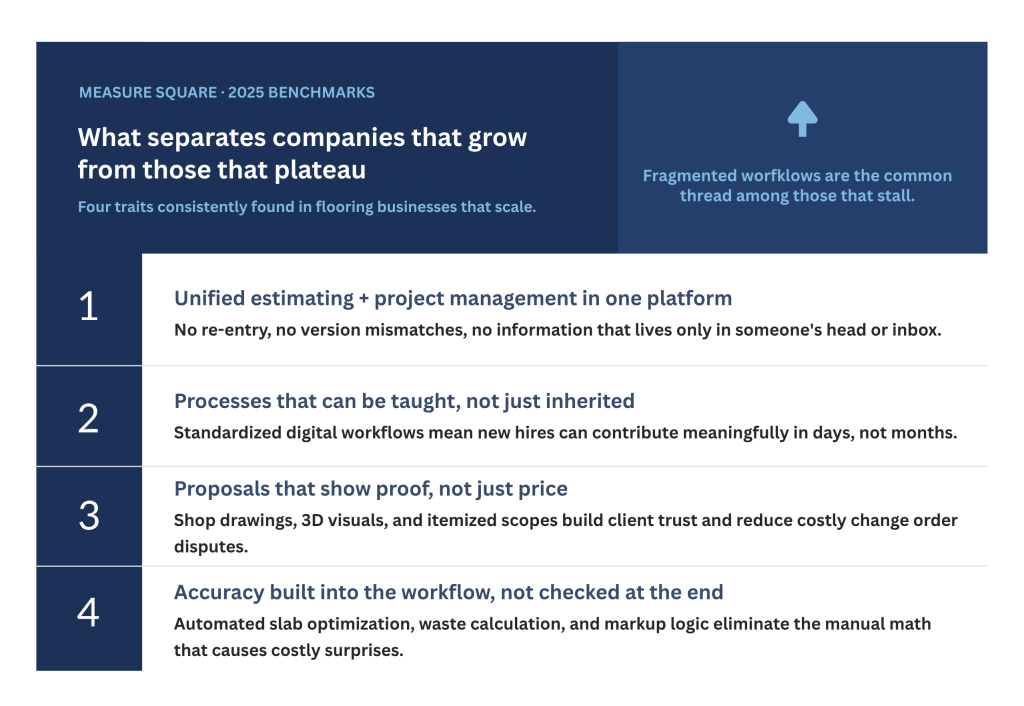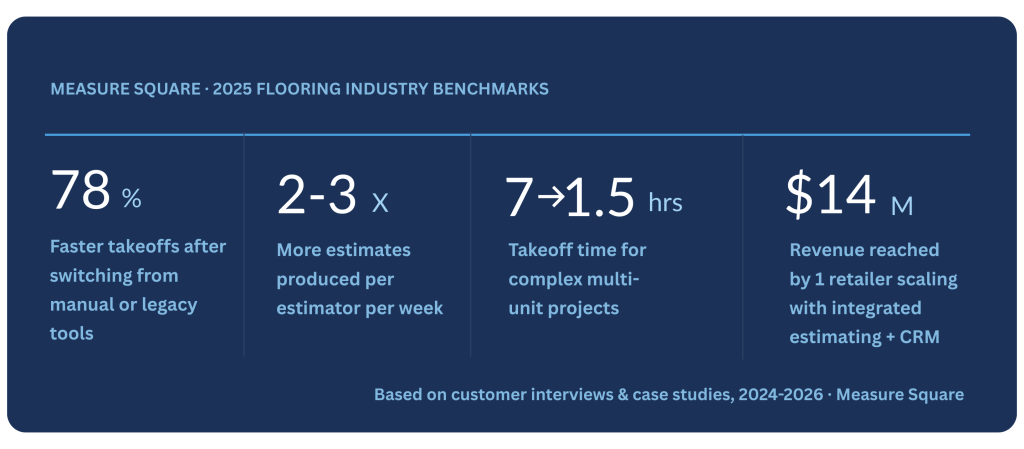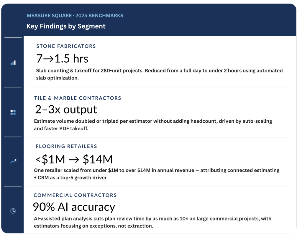 We analyzed the workflows, timelines, and outcomes reported by flooring retailers, commercial contractors, and stone fabricators who switched to digital estimating. Here's what the data shows about where time is lost, where profit is made, and what separates growing companies from stuck ones.