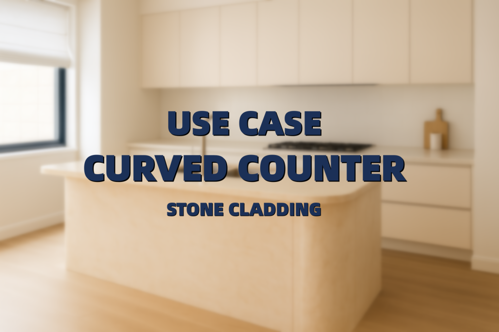 Residential projects often call for unique stone applications, and in this case, the rounded casework with a knee space needed to be fully clad in stone at the customer’s request.